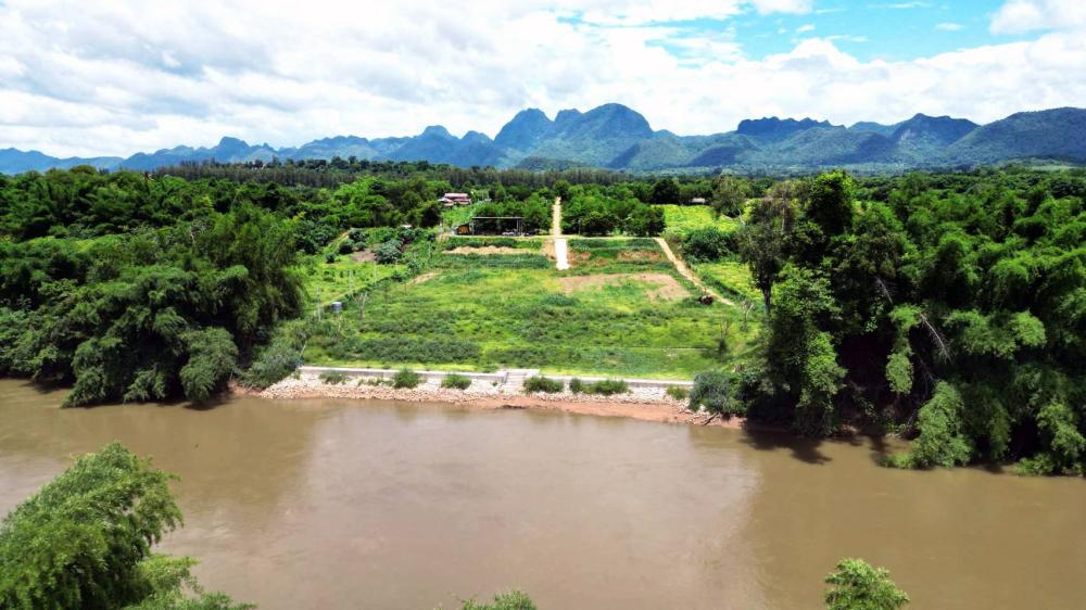 ขายที่ดินไทรโยค ติดแม่น้ำ แควน้อย กาญจนบุรี ใกล้รีสอร์ท มากมาย วิวภูเขา 180 องศา จำนวน 32 ไร่ เป็นโฉนด นส4จ (ครุฑแดง)